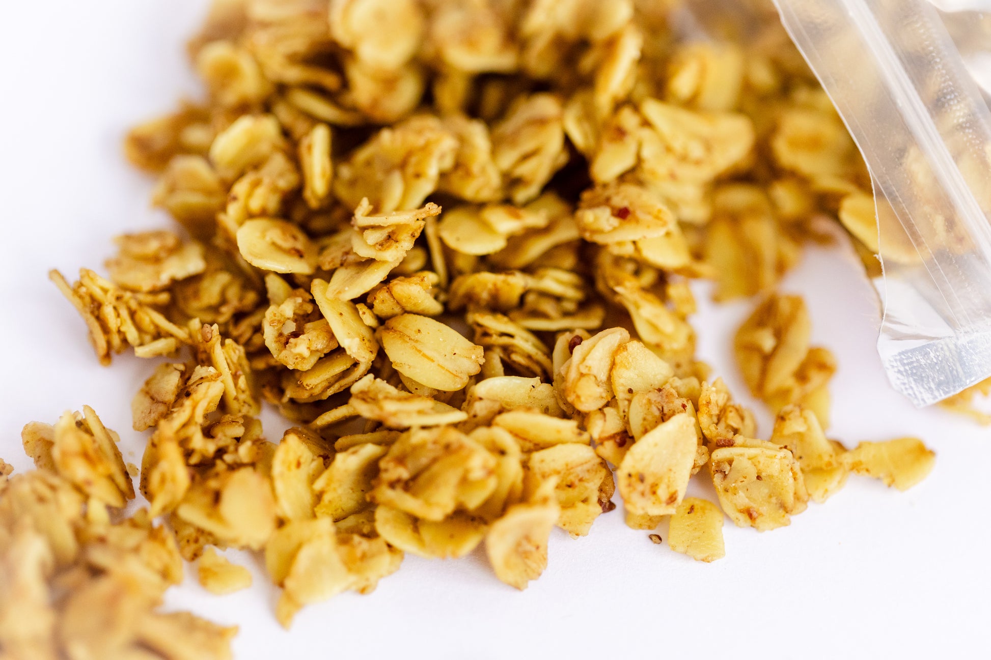 Matcha Turmeric Granola: Organic gluten-free oats, honey, organic coconut oil, organic matcha powder, organic turmeric powder, organic chia seeds, organic flaxseed, Himalayan pink sea salt, pure vanilla extract, organic nutmeg, organic cinnamon, organic liquid stevia, organic rosemary extract.