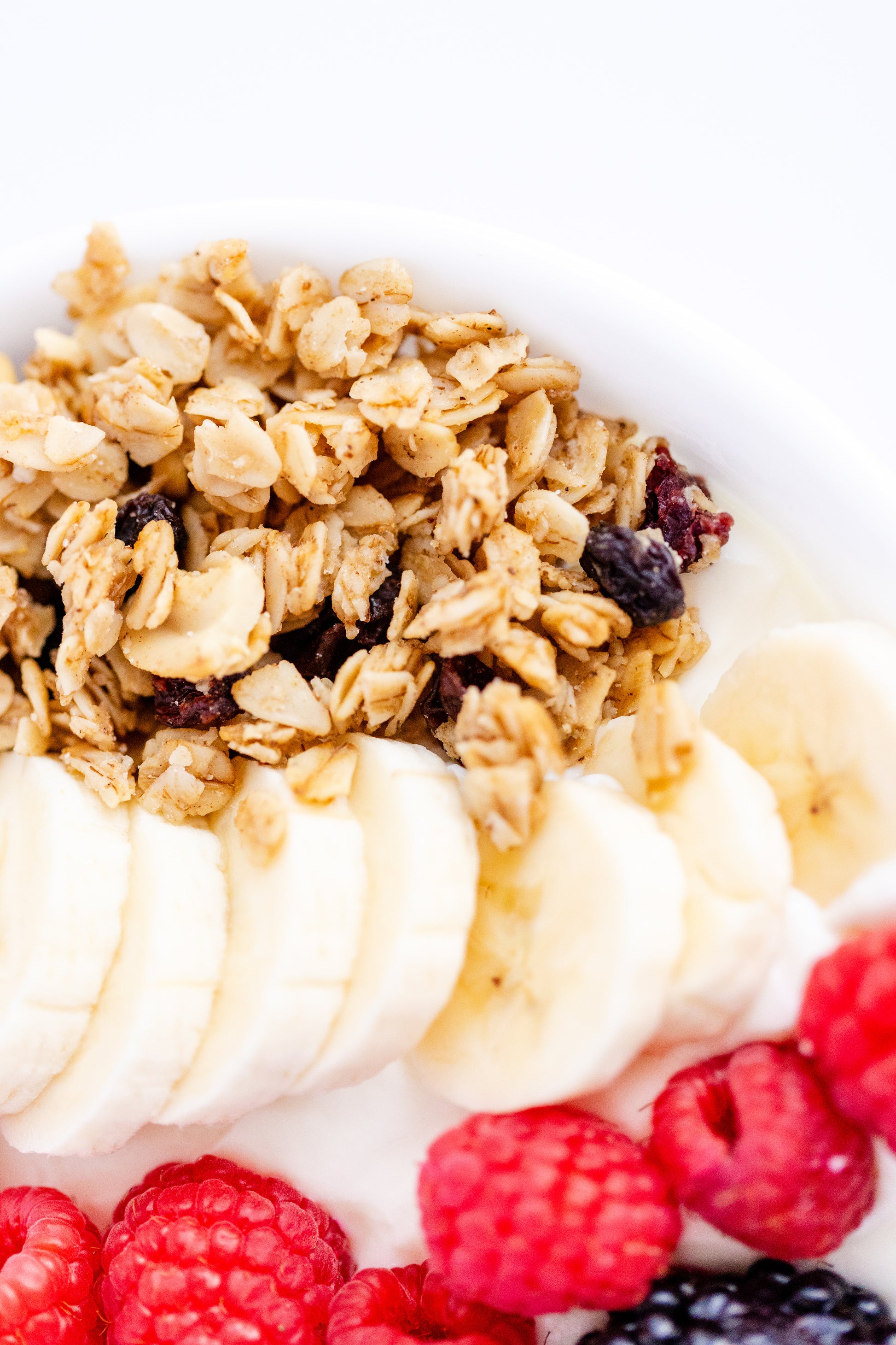 Berry Nutty Granola: Organic gluten-free rolled oats, almonds, cashews, honey, cranberries, raisins, organic coconut oil, organic chia seeds, organic flax seed, Himalayan pink sea salt, organic nutmeg, organic cinnamon, organic liquid stevia, organic rosemary extract.
